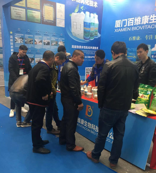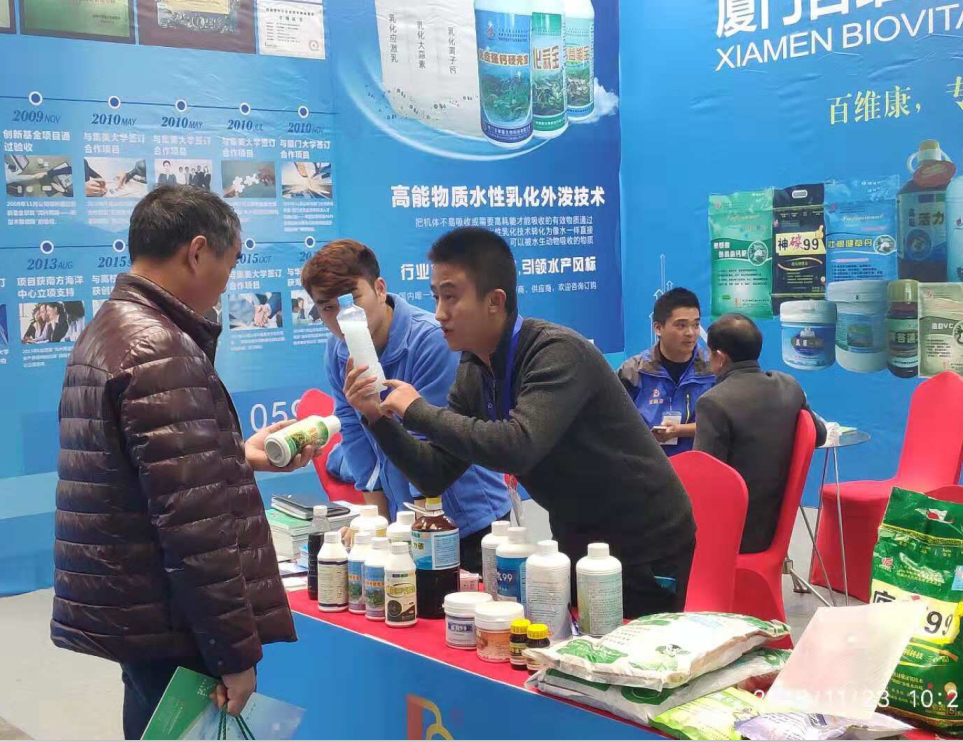 廈門百維康洞悉目前國內(nèi)水產(chǎn)行業(yè)市場現(xiàn)狀,公司高技術(shù)創(chuàng)新團隊在國內(nèi)水產(chǎn)行業(yè)最早研發(fā)“水性乳化技術(shù)”這一水產(chǎn)用品新劑型,把水生動物不易吸收或需要高耗能才能吸收的高能營養(yǎng)物質(zhì)通過水性乳化技術(shù)轉(zhuǎn)化為像水一樣直接可以被動物吸收的物質(zhì),在極大程度上提高有效物質(zhì)吸收率,節(jié)省的生物耗能用來生長,并最早、最廣在肥水劑、免疫增強劑、補鈣硬殼等方面應用這一劑型,填補了國內(nèi)市場這一空白領域,得到了參展者的強烈興趣和廣泛關(guān)注。